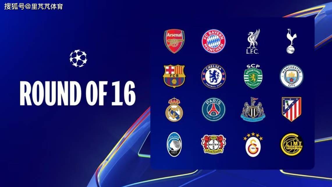 16强名单中英超6队围剿,意甲仅剩独苗。其中包括有直通8队(联赛阶段前8):阿森纳(英超)、拜仁(德甲)、利物浦(英超)、热刺(英超)、巴萨(西甲)、切尔西(英超)、葡萄牙体育(葡超)、曼城(英超),及在附加赛晋级8队:马竞(西甲)、勒沃库森(德甲)、纽卡(英超)、博德闪耀(挪超)、皇马(西甲)、巴黎(法甲)、亚特兰大(意甲)、加拉塔萨雷(土超)。